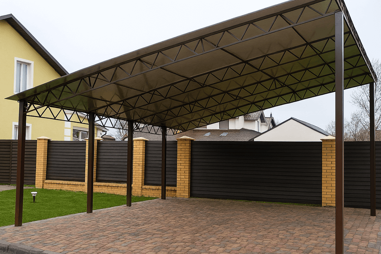 Навес для автомобиля из металлопрофиля представляет собой прочную и долговечную конструкцию, способную защитить транспортное средство от осадков, ультрафиолета и механических повреждений. Для его проведения важно учитывать особенности участка, масштаб укрытия и предполагаемые нагрузки.